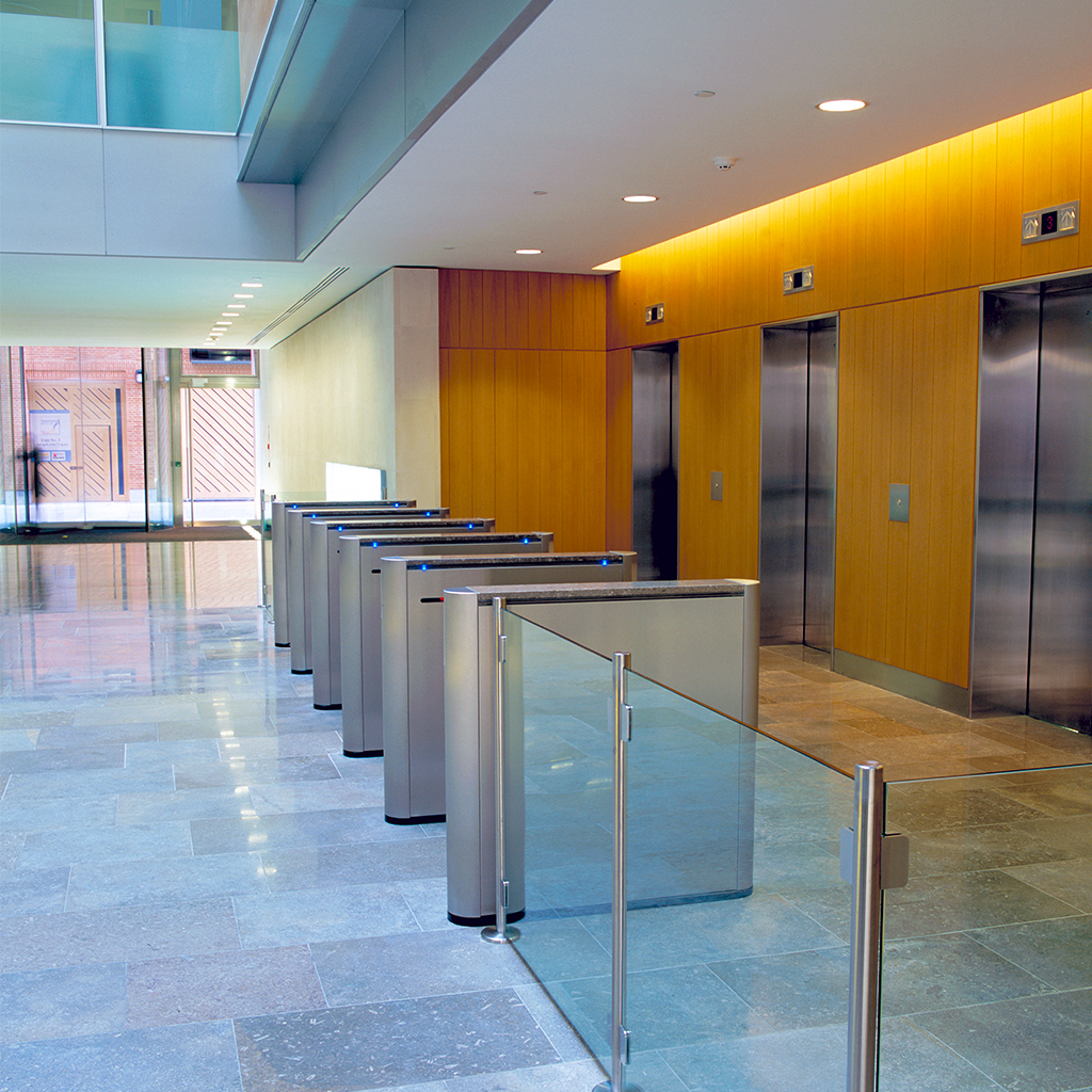 The Fastlane 400 OT is a barrier-free optical turnstile that merges security with a more inviting design. Utilizing advanced electronics and infrared technology, it ensures precise pedestrian detection and smooth traffic flow.