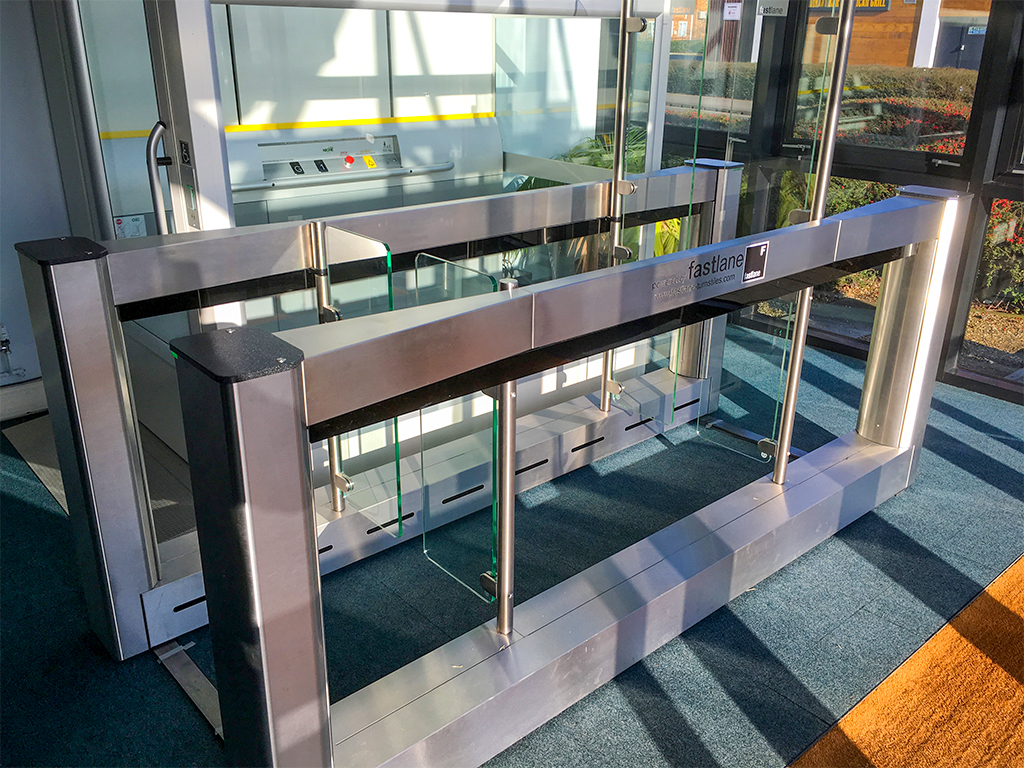 The Fastlane Interlock is a high-security dual-barrier turnstile that prevents unauthorized access and tailgating. Its independently operating barriers and flexible authentication options ensure tight security.