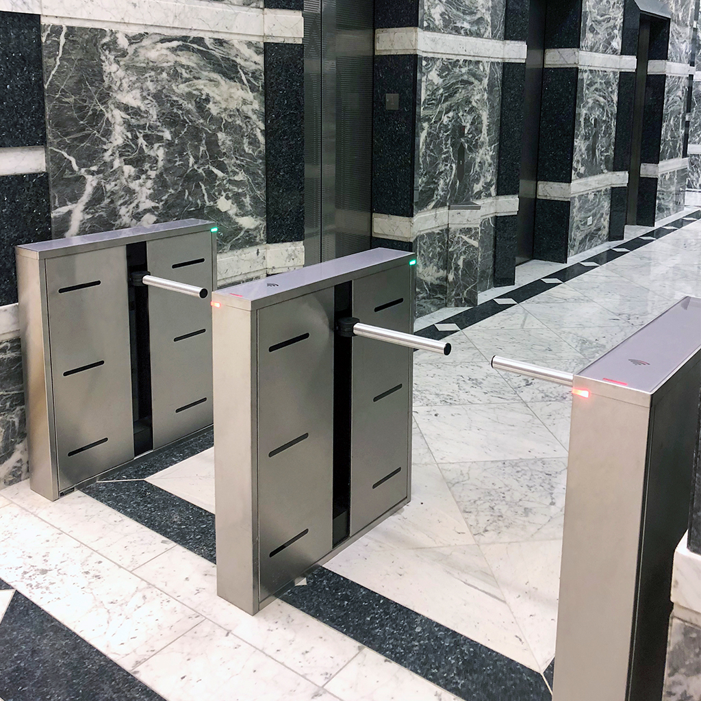 The Fastlane Plus 400 MA turnstile delivers unmatched security with its self-resetting barrier arm and intelligent tailgating detection. It processes 60 people per minute and adapts to any security protocol.